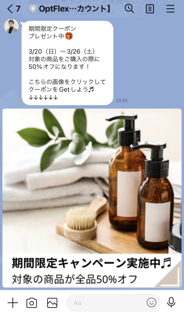 リッチメッセージで配信した方が画面いっぱいに画像を表示できるため、直感的に訴えることができます。